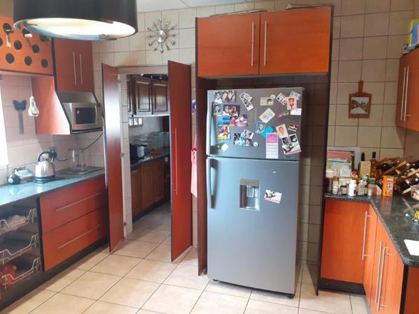 4 Bedrooms (3 En-Suites), Open plan Kitchen with a scullery and pantry. The Spacious dining room have a built-in bar. A separate playroom for the kids. A lapa overlooking the swimming pool and well maintained garden.