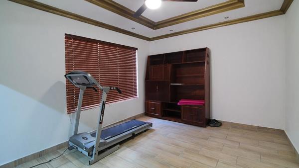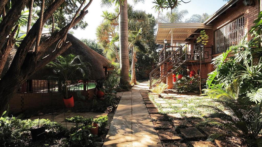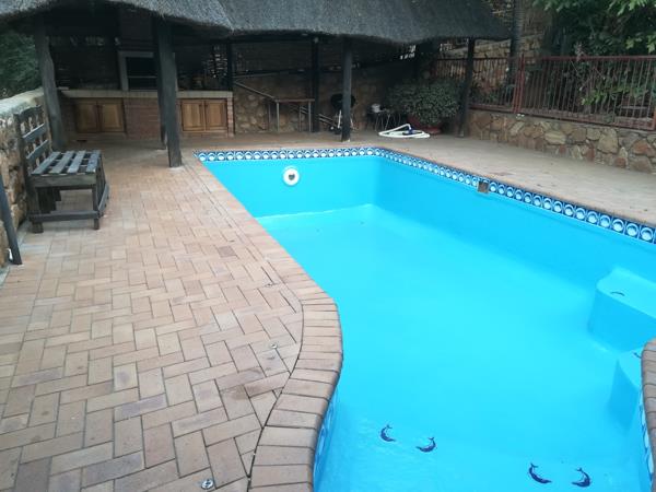 This house consist of 2 lounges, one with gas fireplace, balcony with electronic shutters, dining room, separate bar, beautiful modern kitchen with 32 yellow wood cupboards, scullery and pantry. Two of the bedrooms have their own entrances, servants flatlet, store room, two garages with automated wooden doors, This property also has a 60 sqm flat with built-in braai. The swimming pool is heated with two Lapa''s. Electronic irrigation as well as full alarm system with security beams and security cameras. A lift links the flat to the house below, house can easily be converted into a 7 bedroom house and a 2 bedroom flat.