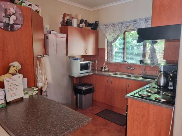 The garden is fenced at at the back and also features lots of fruit trees. There is also a large veranda which is utilised as a braai/entertainment area.
