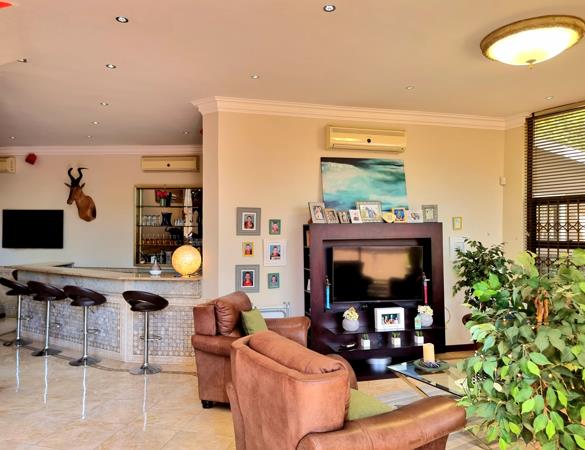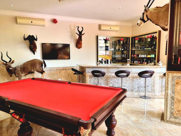 Rooftop Entertainment: The property has a large rooftop entertainment area with a built-in braai, double patio, and spectacular 180-degree views. It also features a marble-laden bar and a projector with a big screen TV.