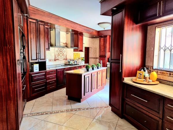 Elegant Interior: Inside, there''s a study, wine cellar, formal lounge, and a modern kitchen with high-end features, including marble countertops and dark amboyna cupboards with gold trim.