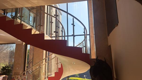 Upon entering, you''re greeted by a grand foyer with soaring ceilings, a statement chandelier, and polished marble floors. The open staircase leads to the upper floors, and floor-to-ceiling windows provide a sense of openness.