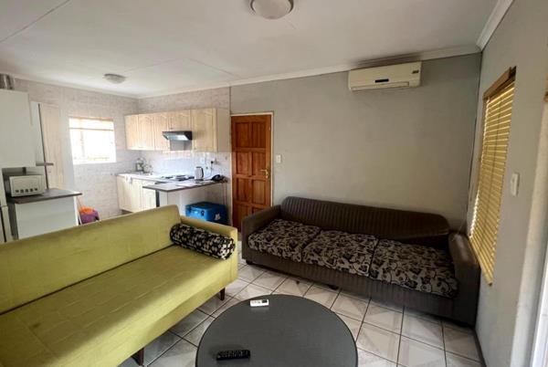 This apartment consists of 2 bedrooms, 1 full bathroom and an open plan lounge/kitchen. The back stoep is enclosed with awnings and can be used as an entertainment area as it flows directly into a small garden with a built braai.
