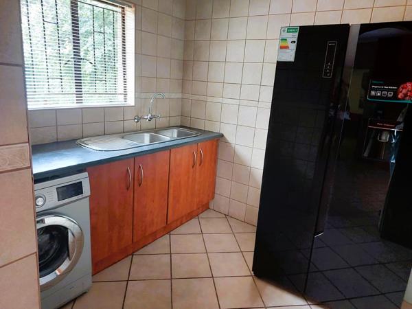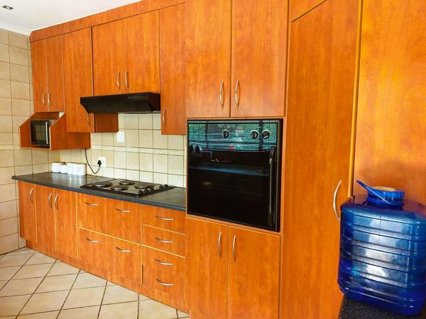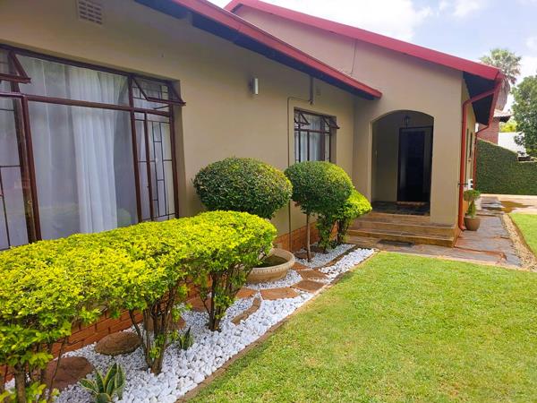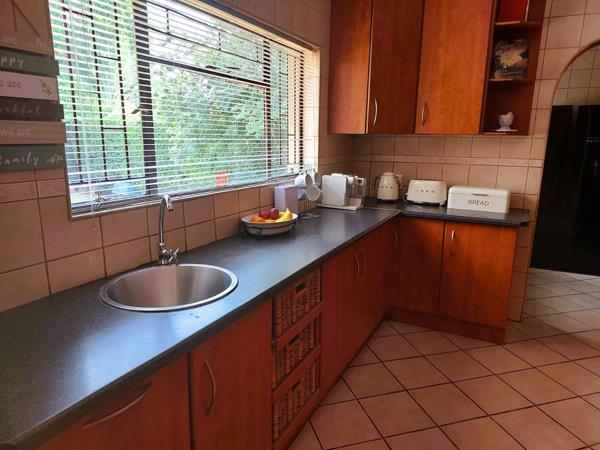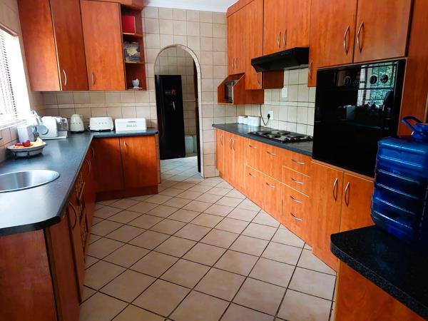 Step inside this charming 3-bedroom, 2-bathroom home and instantly feel a sense of warmth and comfort. The open-plan lounge and dining area create a welcoming atmosphere, perfect for family gatherings and cozy evenings. A dream entertainment room features a built-in braai that seamlessly extends to the expansive backyardwhere a sparkling swimming pool invites you to unwind and enjoy sunny days. The thoughtfully designed kitchen offers ample cupboard space and a separate scullery leading to the large garage and domestic quarters (including a room and bathroom). The main bedroom boasts its own private bathroom, and both bathrooms are equipped with a bath and shower for ultimate convenience. Additional features include a dedicated study, a fully operational irrigation system, four working air conditioners, an electric gate, and a remote-controlled double garage. While the borehole is currently unused, it adds even more potential to this already exceptional property. This isnt just a houseits a home where memories are waiting to be made. Dont miss outcontact me today for a viewing!