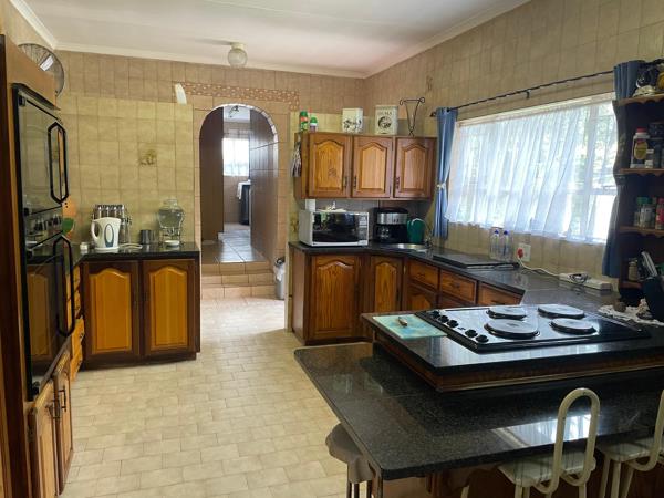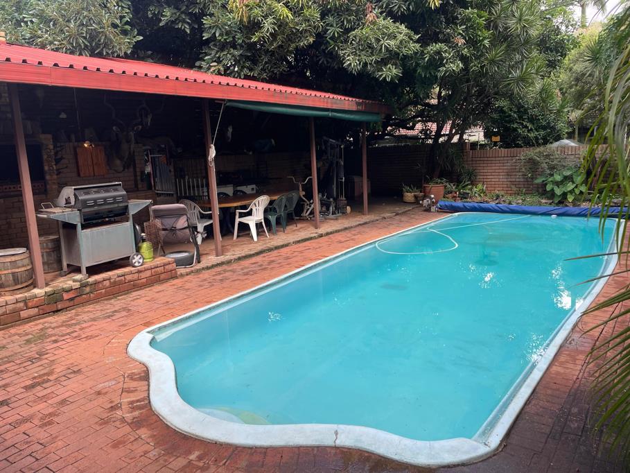 Step outside to a large entertainment area with a built-in braai and a massive pool, perfect for hosting gatherings. The expansive yard provides ample open space, accommodating up to four vehicles with ease.