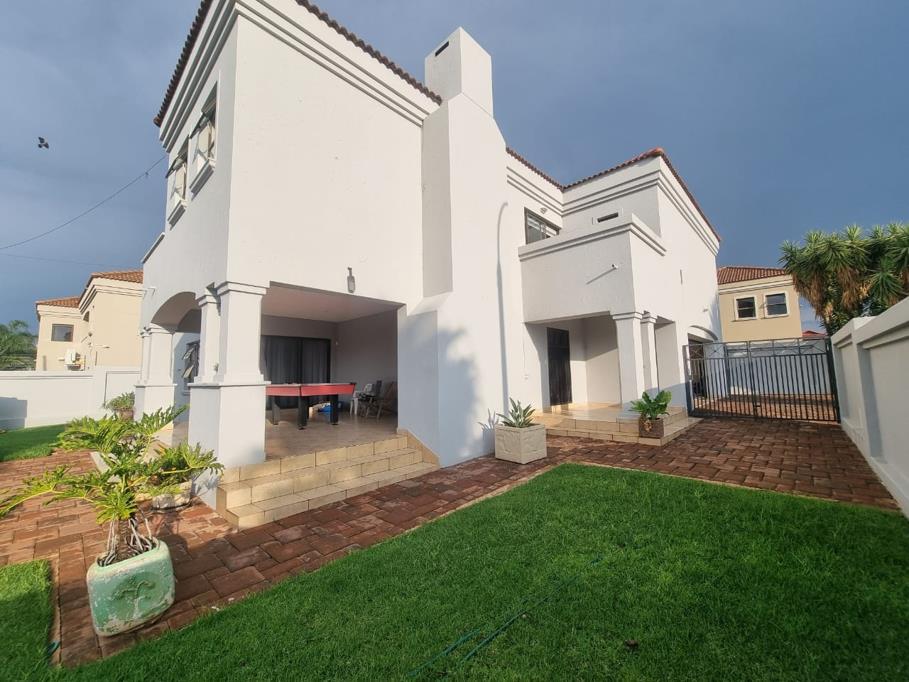 Discover this inviting four-bedroom family home, ideally situated in the sought-after Safari Gardens suburb of Rustenburg. Boasting a modern Mediterranean-style exterior with clean white finishes and terracotta roof tiles, the property presents an appealing curb appeal, complemented by a well-maintained garden, brick paving, and a secure gated entrance. The residence spans a generous 393 square metres, offering ample space for comfortable living.