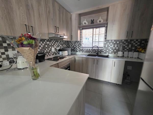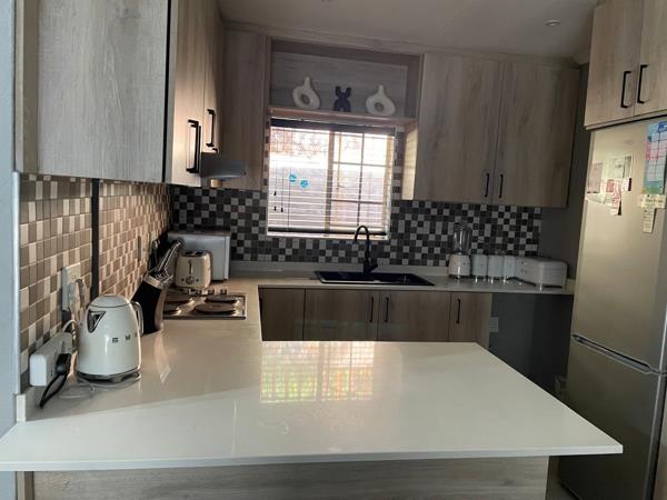 Exclusive Mandate! Beautiful Modern townhouse, set in the popular complex of Arendskloof, very private with a small braai area on the open patio. Boasting three rooms where the garage has been converted into a spacious room. Two bathrooms. Very modern kitchen.