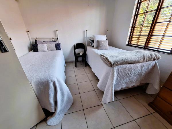 Outdoors, enjoy the large swimming pool surrounded by space for family gatherings and summer fun. The property also includes two open-plan flats, each with a kitchen and bathroom ideal for visiting family, guests, or generating up to R15,000 in rental income per month.