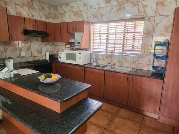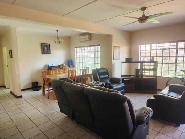 Welcome to this beautiful and well-loved home that offers everything you need and more! Featuring 3 spacious bedrooms and 2 modern bathrooms, this home invites you in with its open-plan lounge and dining area perfect for family time and entertaining. The kitchen with separate scullery makes cooking a joy, and patio. Also consists of 5 Aircons and 5 fans for cooling.