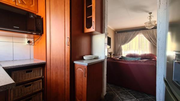 The kitchen and all bedrooms feature fitted cupboards, providing storage space. The lounge is ideally situated next to the inviting kitchen, making it perfect for family gatherings and entertaining.