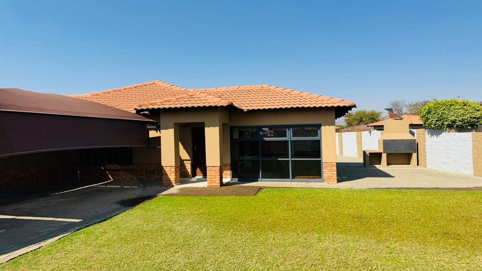 The exterior of the home boasts an extremely neat and well-established garden, a dedicated entertainment area, and a built-in braai, ideal for hosting family and friends. This property is designed for low maintenance, and the carports can accommodate up to six vehicles.