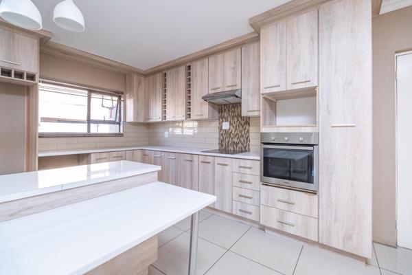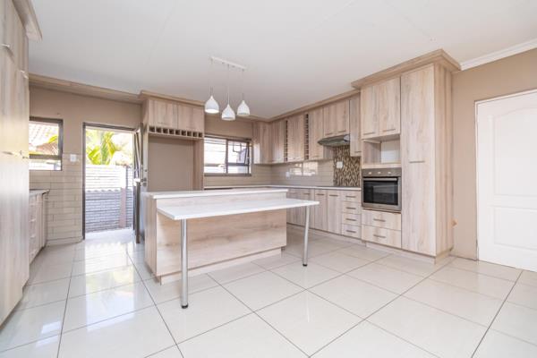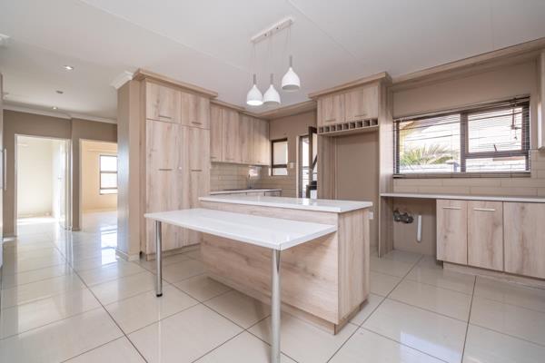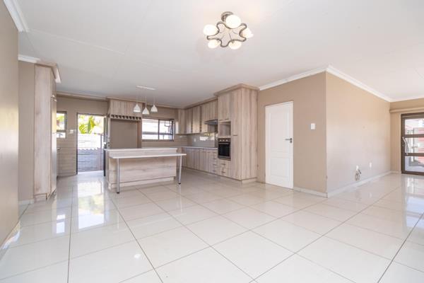 The main bedroom features a walk-in closet and generous space, while all bedrooms are filled with beautiful natural light and come fitted with built-in cupboards. Theres even additional cupboard space in the corridor for extra convenience. Enjoy seamless flow from the breathtaking patio into the open-plan lounge and dining area perfect for entertaining or relaxing. The large kitchen is a chefs dream, offering ample cupboard space and a modern layout.