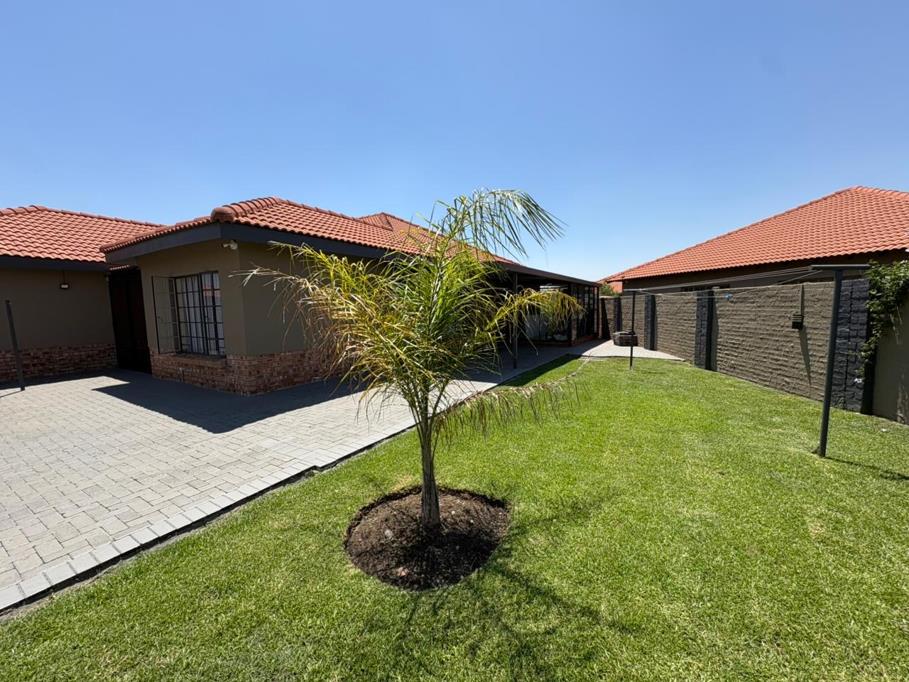 From the dining area, sliding doors lead out to the entertainment patio with a built-in braai, overlooking a sparkling swimming pool ideal for relaxed weekends.