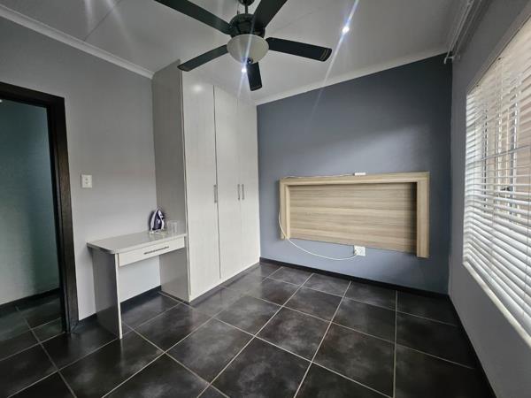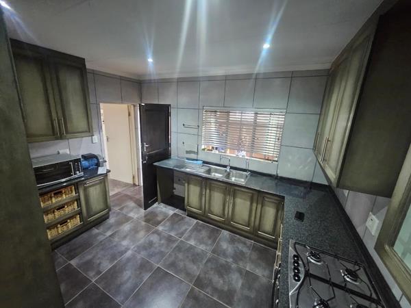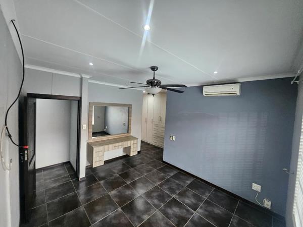 This upmarket property offers solar-powered, swimming pool, water storage, extra carports for multiple storage for your trailers, double garage and carports, entertainment Area with braai area,fitted air conditioner and fans,building cardboard and headboards.