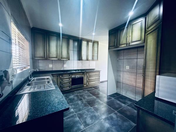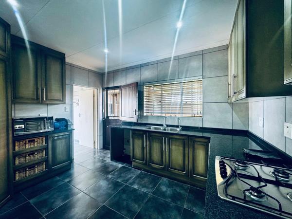 At the heart of the home is a warm and inviting dining area, perfect for everyday family meals or entertaining guests. Adjacent to this space is an enclosed braai entertainment area, ideal for year-round indoor entertaining and relaxed social gatherings. The well-appointed kitchen, fitted with granite countertops, ample cupboard space, and generous work surfaces, is ready to inspire your culinary creations.