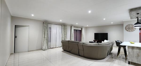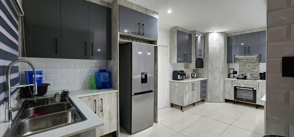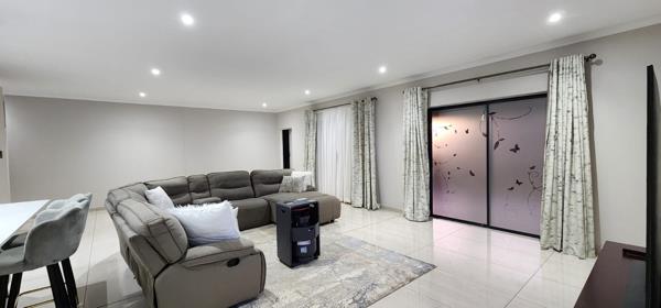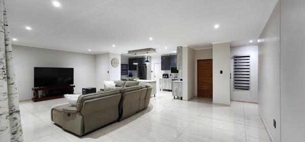 Upon entering, you''re greeted by an elegant and spacious open-plan layout. The modern kitchen showcases sleek melamine and high-gloss finishes, a built-in oven, stove, and hob all seamlessly flowing into a generous dining and living area. Perfect for entertaining, the home extends to a covered patio complete with a built-in braai, ideal for relaxed gatherings with family and friends.