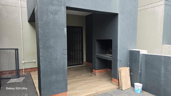 The spacious living room is designed for relaxation and gatherings, and it opens out to a small private yard, perfect for outdoor enjoyment. For added comfort, the unit is equipped with air conditioning to keep you cool throughout the year. Enjoy the added feature of a built-in braai, making it easy to host friends and family for memorable barbecues.