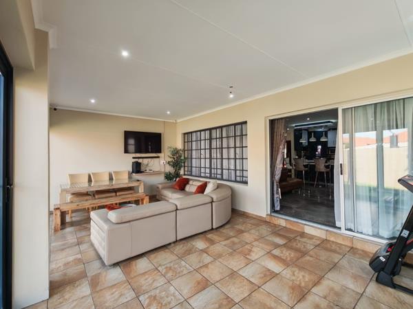 Step inside this stylish, modern home and youre welcomed by a bar area that flows seamlessly into the open-plan living, dining, and kitchen spaces perfect for both entertaining and everyday family life. The entertainment area with a built-in braai invites you to host gatherings all year round.