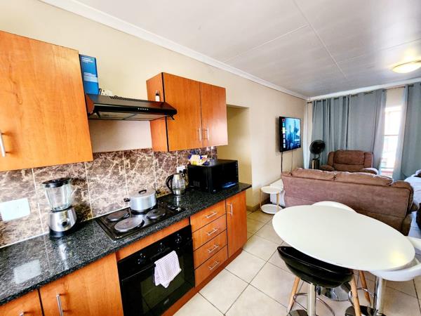 The fully fitted kitchen seamlessly integrates with the open-plan lounge area, creating a welcoming and versatile space for entertaining and relaxation.