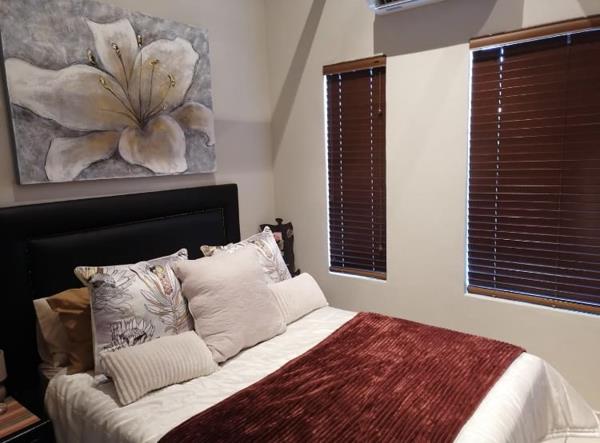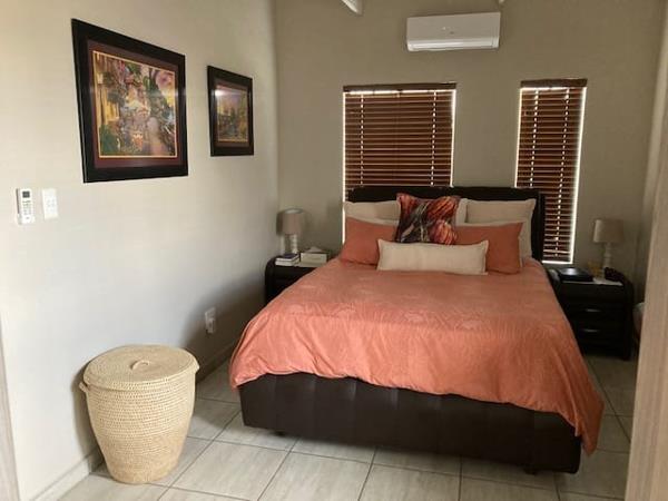 This modern property in the sought-after Nyala Rock Estate, Waterval East, offers a comfortable and convenient lifestyle. The home features 3 spacious bedrooms, all with air conditioning and built-in wardrobes. The main bedroom includes an en-suite bathroom, while the additional full bathroom serves the other rooms. The open-plan living and kitchen area is perfect for entertaining, with the kitchen boasting a newly installed gas stove, an island, and ample storage. The living room also has air conditioning and opens onto a covered patio with a built-in braai, leading to a low-maintenance yard. Additional highlights include a double garage, 2 carports, and 24-hour security within the estate, ensuring peace of mind. The property is ideally located close to Waterfall Mall and other shopping centers, making it a highly desirable home in a prime location.