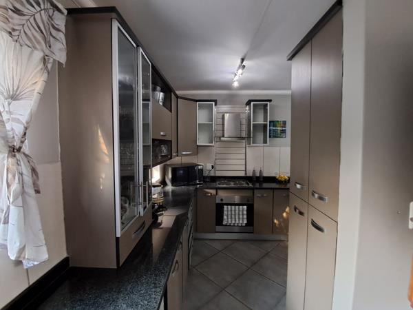''''Discover comfort and style in this 3-bedroom home in a secure estate. Features open-plan living with a modern kitchen, master suite with AC and en-suite, plus 2 bedrooms and a second bathroom. Entertain on the covered patio with built-in braai. Includes single garage and 24/7 estate security''''.