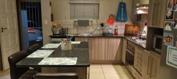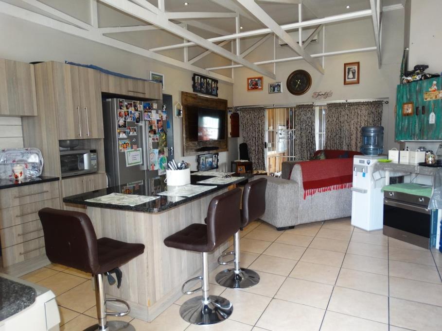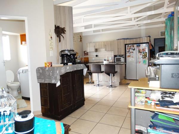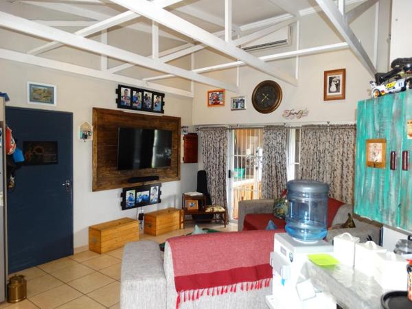 This well-designed home offers an inviting open-plan layout, seamlessly connecting the lounge, dining area, and modern kitchen. The living area opens onto a covered patio fitted with a built-in braai, ideal for relaxed entertaining.