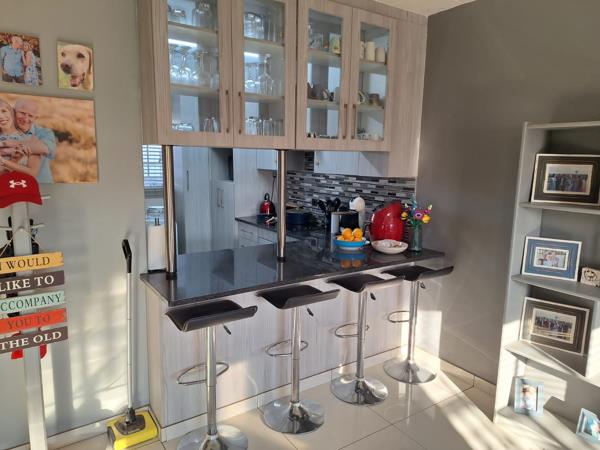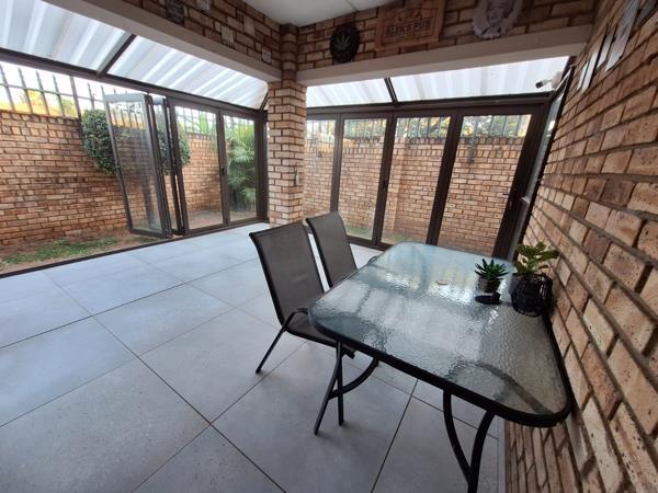This beautiful duplex is situated in a safe complex, offering an enclosed spacious front and back garden, attached garage with extra storage room and a secure entertainment area, equipped with folding glass doors, fan and infrared heater.
