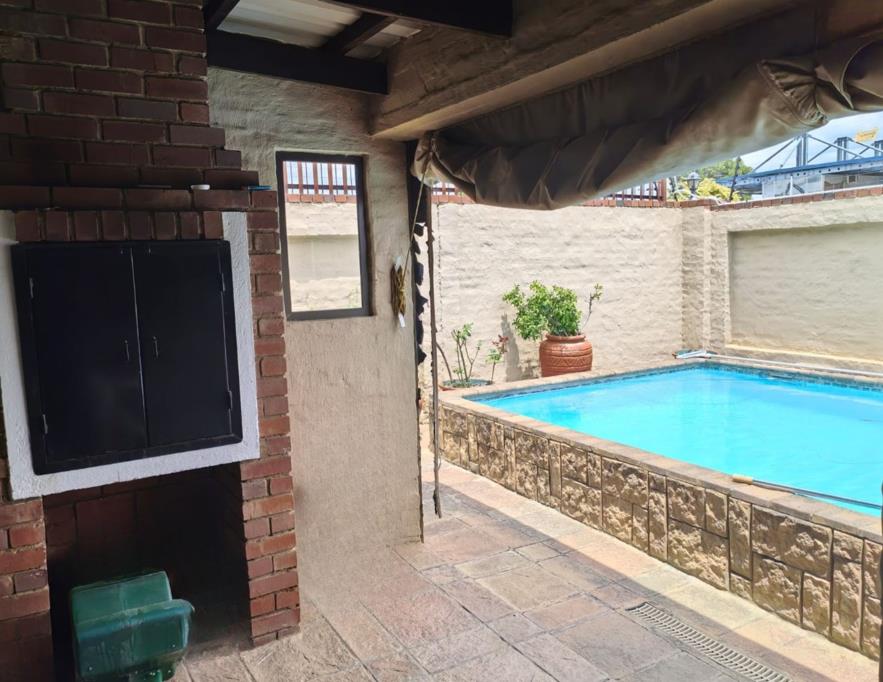Private patio overlooking a sparkling swimming pool perfect for entertaining...