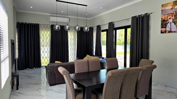 Enjoy the modern elegance of the property''s dining room, scullery, and laundry facilities. Luxurious tiles grace the floors, while fine wood cupboards provide ample storage space. Step outside to discover a blissful oasis, complete with a swimming pool nestled within a big yard.