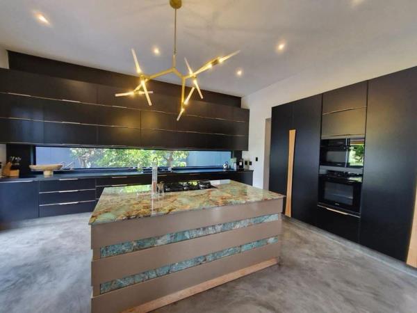 This FOREVER family home was designed with practical thinking, extravagant finishing and breathtaking beauty, it offers a combination of peace, luxury and comfort. The flow of this astonishing house begins with a smart door that opens with biometrics. This is followed with a spacious double volume kitchen, dining room and lounge with a spectacular feature wall and custom designed pendants that has been specifically placed to create a relaxing environment.