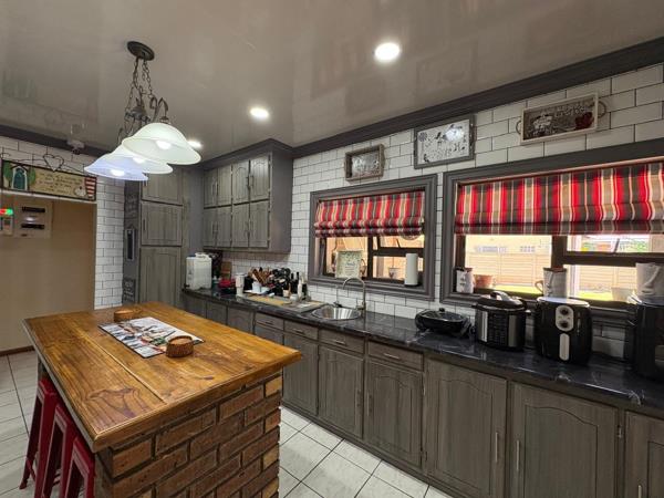 Modern kitchen with built in cupboards, - complete with a scullery and pantry