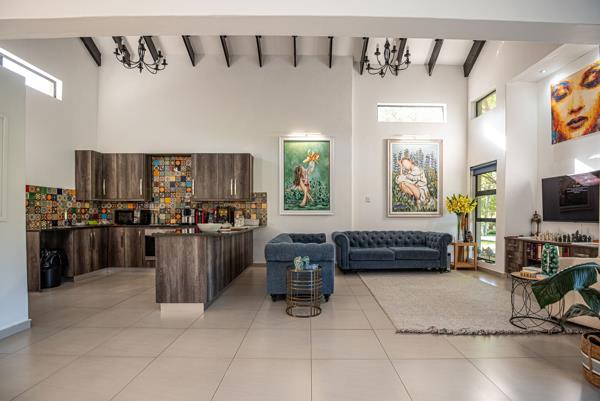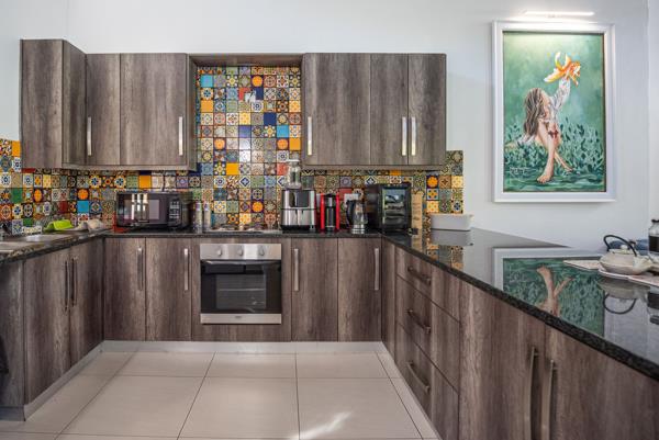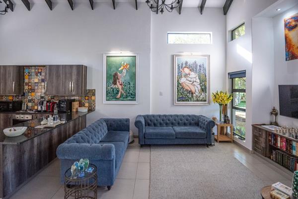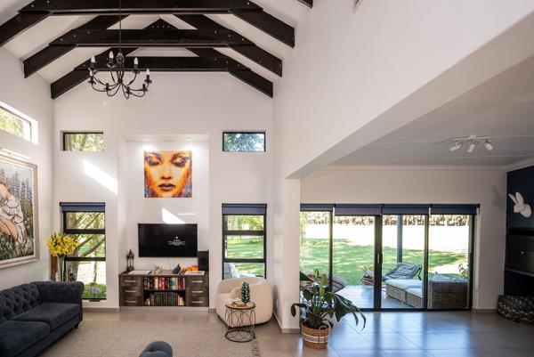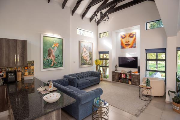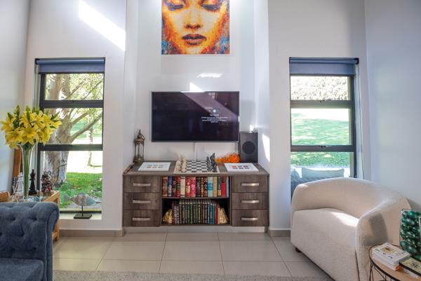 A dedicated study provides the ideal work-from-home space, while additional features such as an air conditioner and water cooler add extra comfort throughout the year. The braai area overlooks beautiful scenery, creating a peaceful setting to unwind or entertain while enjoying the tranquil estate atmosphere.