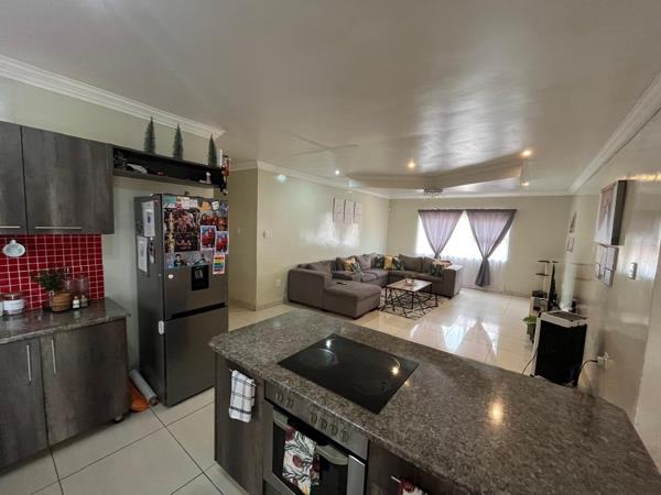 Step inside and be welcomed by a large open-plan kitchen and living area that creates a warm and inviting atmosphere. The modern kitchen boasts ample cupboard space and features a central island, ideal for casual meals or gathering with family while entertaining. The living area flows effortlessly, making it the heart of the home.