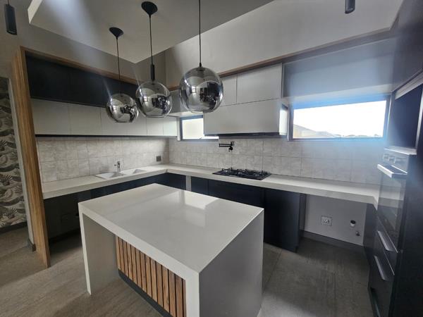 The sophisticated kitchen boasts high quality finishes and overlooks the stylish living and dining area.