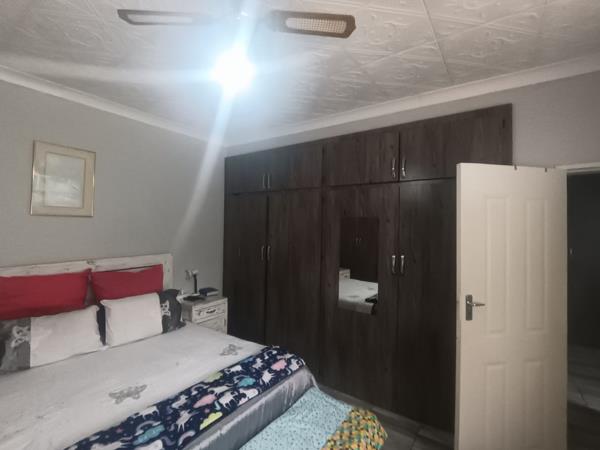 Laundry room, Swimming pool, nice sitting area next to the Swimming pool which is neatly fenced and fitted with a cover. Double entrance and carports for all your vehicles, and to your surprise you will find 2 flats, and no issues with Loadshedding or water shut downs.