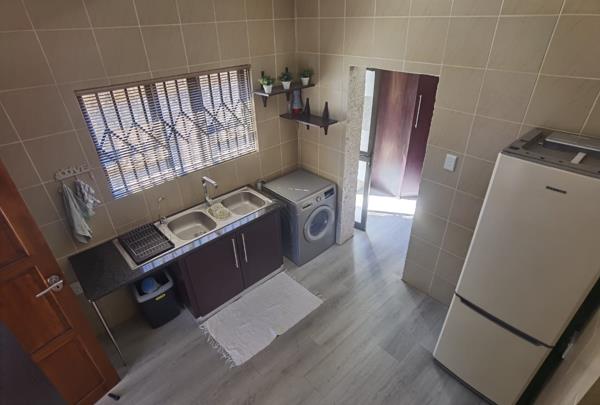 The property includes a large, self-contained flatlet ideal for extended family, guests, or rental income. It offers a spacious open-plan living and kitchen area, a generous bedroom, and a private bathroom with a shower, toilet, and basin.