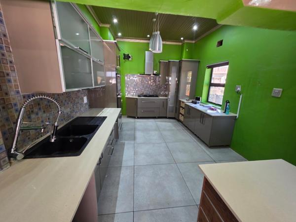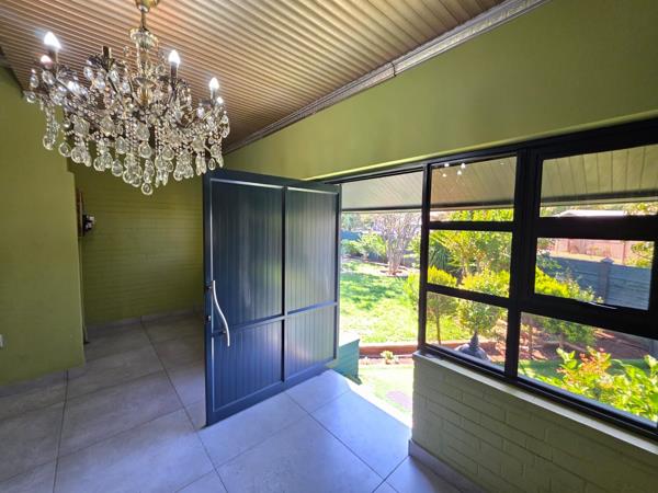 Step outside to a large garden complete with a swimming pool, borehole, and JoJo tank, ensuring both relaxation and water efficiency.