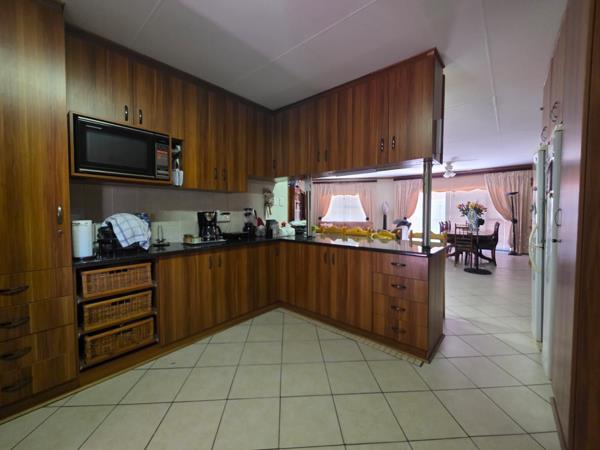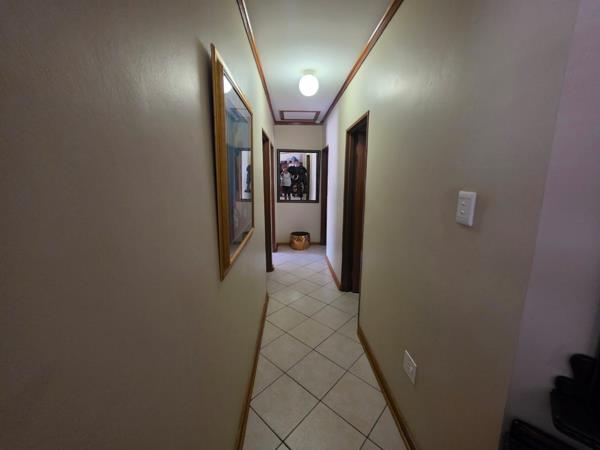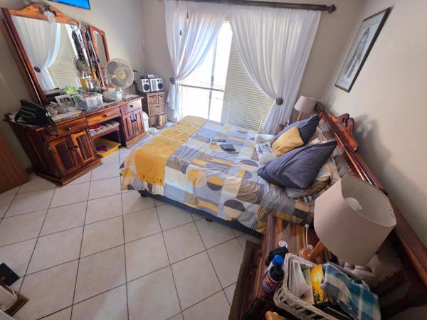 Low-maintenance face-brick home ideally located close to leading schools, shopping centre, and hospitals. This well-kept property offers three bedrooms and two bathrooms, including a main en-suite. The open-plan lounge and dining area is fitted with an air conditioner and flows seamlessly into the kitchen, which features built-in cupboards, an eye-level oven, and hob. An inviting entertainment area with a built-in braai is perfect for relaxed gatherings. Additional features include a double garage, carport, and a neat garden with a JoJo tank. The property is fully walled and secured with burglar bars, an alarm system, electric fencing, and security gates.