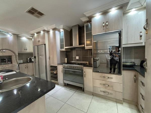 Situated in a popular area, this spacious family home offers four bedrooms and four bathrooms, perfect for comfortable family living. The open-plan design includes a family room, lounge, dining area, and a well-equipped kitchen with built-in cupboards, eye-level oven, gas hob, extractor fan, and separate scullery.