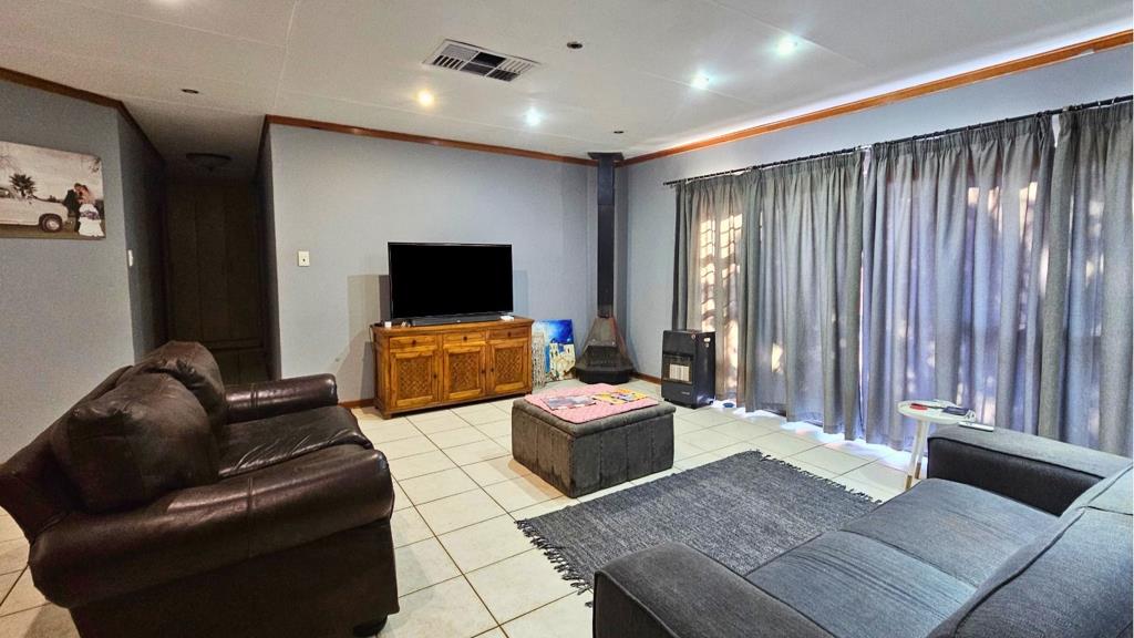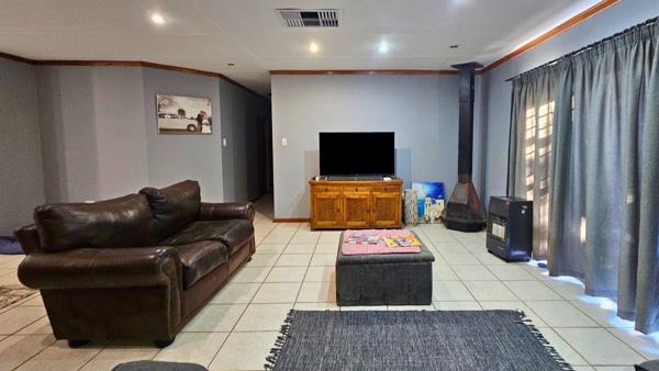 Outside, youll find a neat garden with a Jo-Jo tank, perfect for water-saving convenience. The property also offers a double garage, is fully fenced, and secured with security gates for peace of mind.