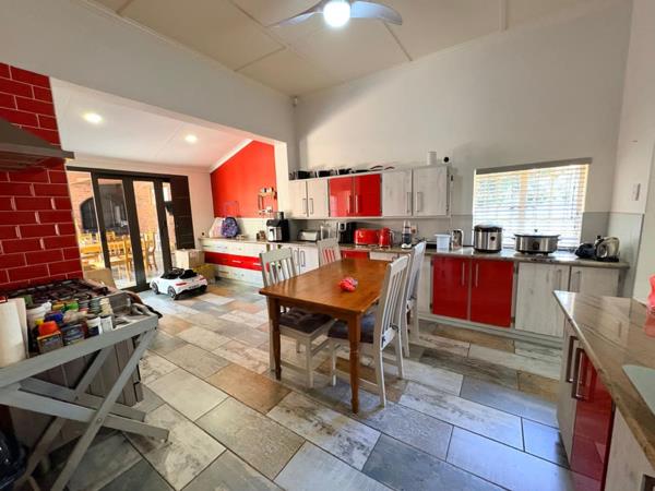 The kitchen is well equipped with built-in cupboards, a gas stove, extractor fan, scullery and pantry, offering ample storage and functionality. Additional features include a single garage and staff accommodation.
