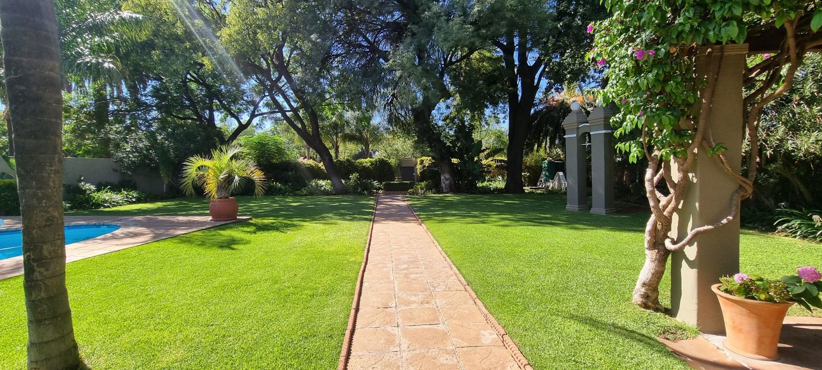 Overall, this home is the epitome of luxurious living, offering spaciousness and beautiful outdoor features with a lush garden.
