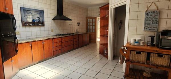 The kitchen is fitted with melamine cabinetry, double eye level oven and boasts granite countertops. There is also a walk-in pantry and a spacious separate scullery leading into a laundry, allowing for abundant storage and functionality.