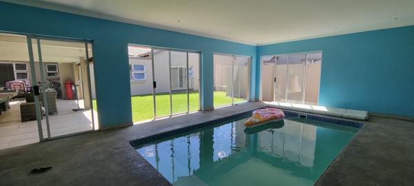 Exquisite Modern Family Home For Sale In Minerva Gardens. Be invited into glamour and style. Upon entering this home you step into a spacious living and dining area with stacking doors leading onto an undercover entertainment area, with a built in braai, that is adjoined to an indoor swimming pool.