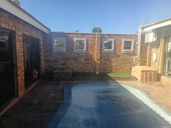 Air conditioners, heated Swimming pool, 2 entertainment areas, one is a Lapa, lovely sliding doors that open to the courtyard and entertainment area. Jo jo tank with pump, connection for a generator. This property is also very low maintenance, and an extra bonus is a lovely spacious bachelor flat.