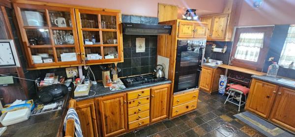 The well-appointed kitchen is fitted with built-in cupboards, an eye-level oven, a gas hob, and an extractor fan, making meal preparation a delight. Step outside to an inviting outdoor entertainment area, complete with a sparkling swimming pool, a lapa with a built-in braai, and a beautifully maintained garden with an irrigation system.