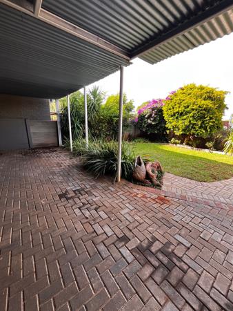 living area. Well equiped kitchen with under counter oven, gas hob and extractor fan. Outside you will find a lapa with built in braai. Small garde, storage room. Double carport. Fully fenced property with burglar bars and alarm system for peace of mind
