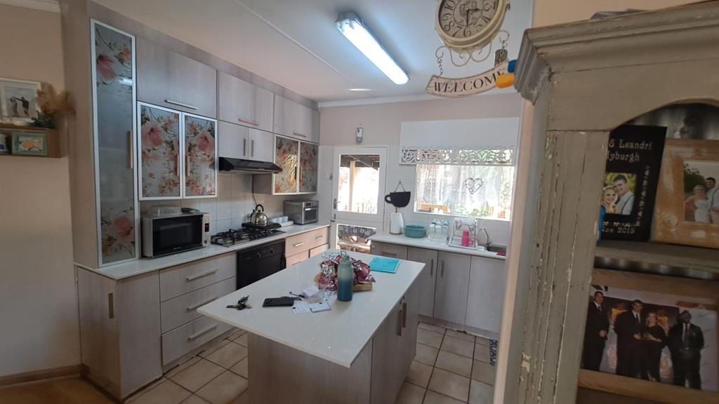 Stepping inside you will be welkcomed by the open plan modern kitchen whcih seemlessly overlooks the living area and dining room. The kitchen is well equipped with sufficient built in cupboards, under counter oven and hob, with exgtractor fan as well as a speragte laundry and scullery for added practicality. With centre island in the kitchen for your conveniance.