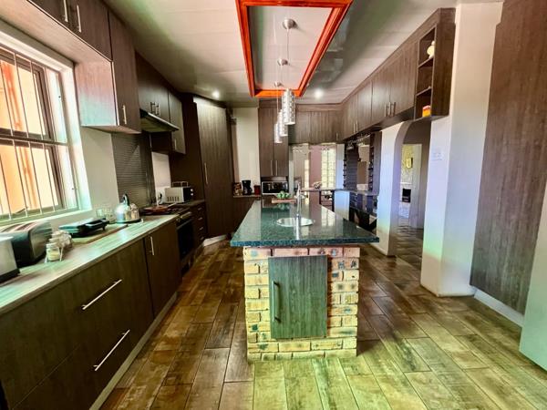 The modern kitchen is the true heart of the property sleek, functional, and inviting. A spacious island creates the perfect gathering point for family or clients alike, while a separate scullery keeps the main area neat and organized. Whether preparing family meals or catering for meetings, this space effortlessly adapts to your needs.