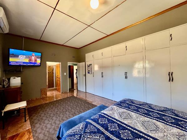 Behind secure gates, this impressive five-bedroom residence welcomes you with space, comfort, and versatility. Each bedroom is thoughtfully designed with built-in cupboards, elegant blinds, and air conditioning to ensure year-round comfort. Two of the bedrooms feature private en-suite bathrooms, while a full family bathroom serves the rest of the home with style and convenience.